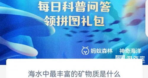 答:氯化钠。海水海水中的中最氯化钠含量大约占总矿物质的77%,